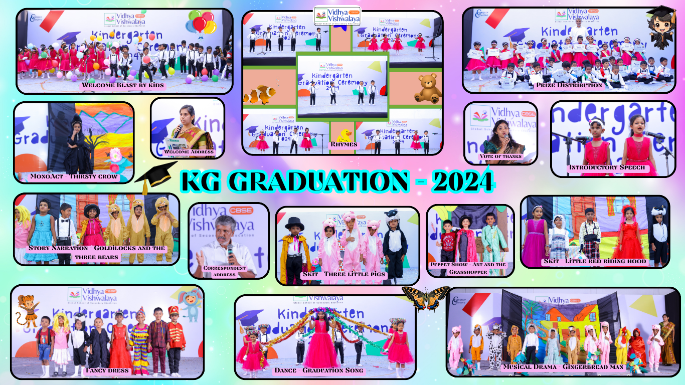 Beginning to the threshold of a new chapter. Our KG gems of Vidhya Vishwalaya are stepping into the next grade. We celebrated the moment, we celebrated them and their success by a grand event called “KG- Graduation”.
