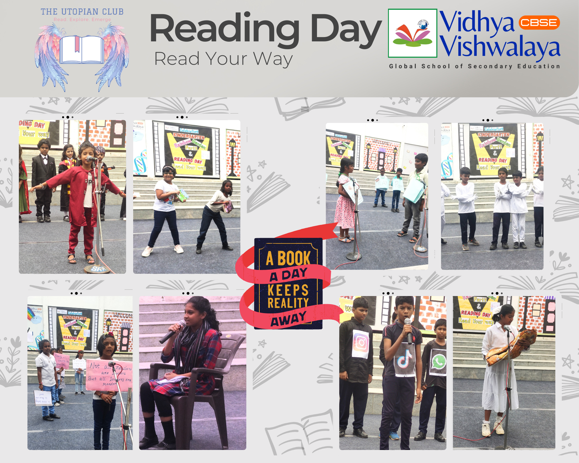 Reading Day at Vidhya Vishwalaya is an annual event dedicated to promoting the joy of reading. This special day aims to instil a love for books and enhance students’ imaginations through engaging literacy activities. The celebration highlights the importance of reading for personal and academic growth.